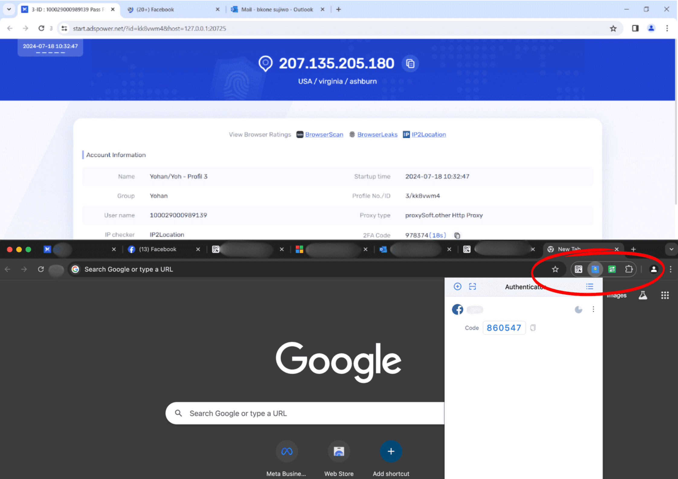 Récupérer votre code 2FA pour Meta Pour accéder à votre compte Facebook via AdsPower : ouvrez AdsPower et lancez votre session attribuée. Option 1 — Méthode URL : ouvrez un nouvel onglet dans AdsPower et visitez : 👉 https://start.adspower.net/?id=kk8vwm4&host=127.0.0.1:20725 Option 2 — Méthode navigateur : sur la première page du navigateur AdsPower, regardez en haut à droite : « 2FA Code ». Copiez le code et utilisez-le pour vous connecter à Facebook.